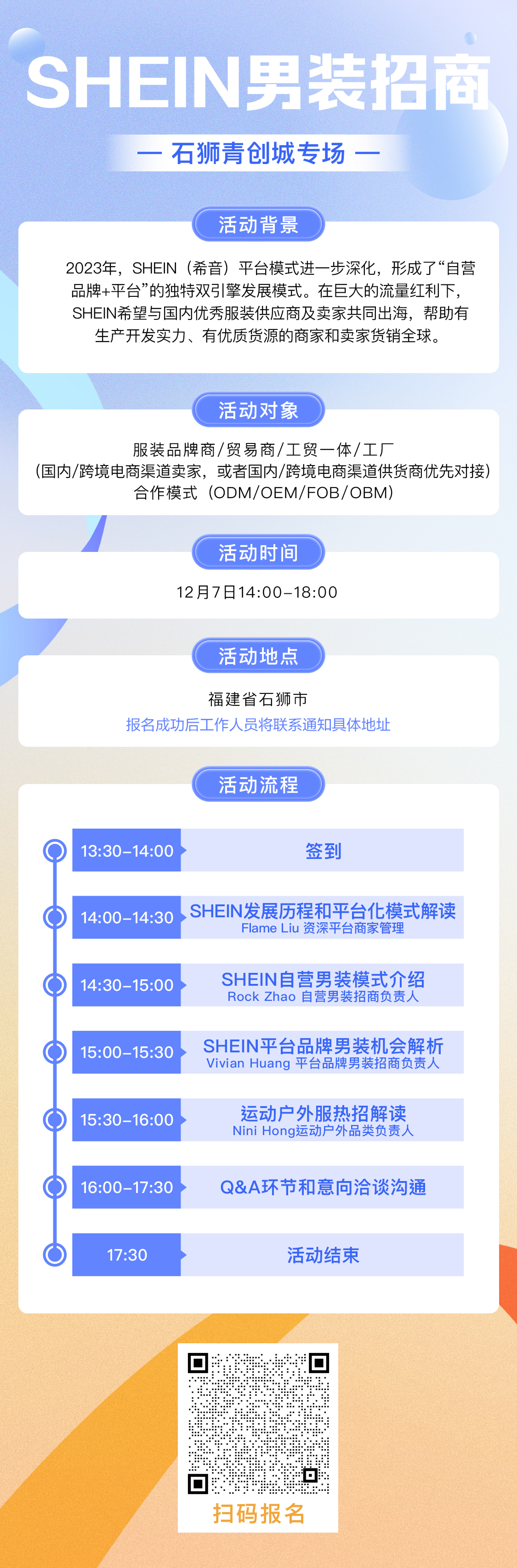 SHEIN邀您参与12月7日男装石狮青创城招商专场!招商资讯发布时间:2023年12月07日 19:47:21资讯动态/SHEIN邀您参与12月7日男装石狮青创城招商专场!SHEIN邀您参与12月7日男装石狮青创城招商专场!招商资讯发布时间:2023年12月07日 19:47:21