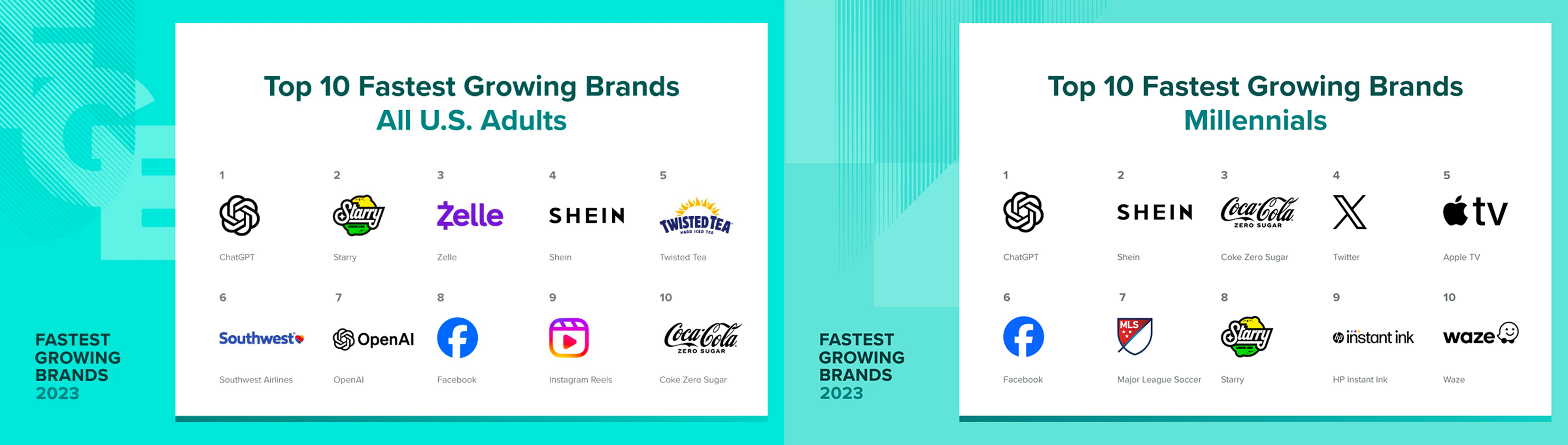 值得一提的是,SHEIN还同时入选“2023年千禧一代中十大增长最快品牌”第二名,与ChatGPT齐名,成为全美千禧一代 (1981年-1996年出生) 年轻人非常喜爱的品牌之一。